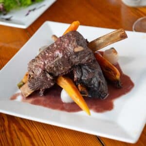 When serving bison shortribs, pairing them with the right Virginia red wine elevates the meal to a gourmet experience. Rich and tender, bison shortribs pair beautifully with hearty Virginia reds like Cabernet Franc, Petit Verdot or Bordeaux-style blends. Chef Matty’s personal go-to pairing for this recipe is Barboursville Vineyards’ award-winning Octagon wine. Red blends offer dark fruit flavors, earthy undertones, and firm tannins that perfectly complement the bold, slightly gamey taste of bison. For a softer option, a Virginia Merlot balances the richness of slow-braised bison shortribs while enhancing savory spices. Pairing locally made Virginia wines with bison shortribs not only highlights the region’s terroir but also creates a truly memorable dining experience.